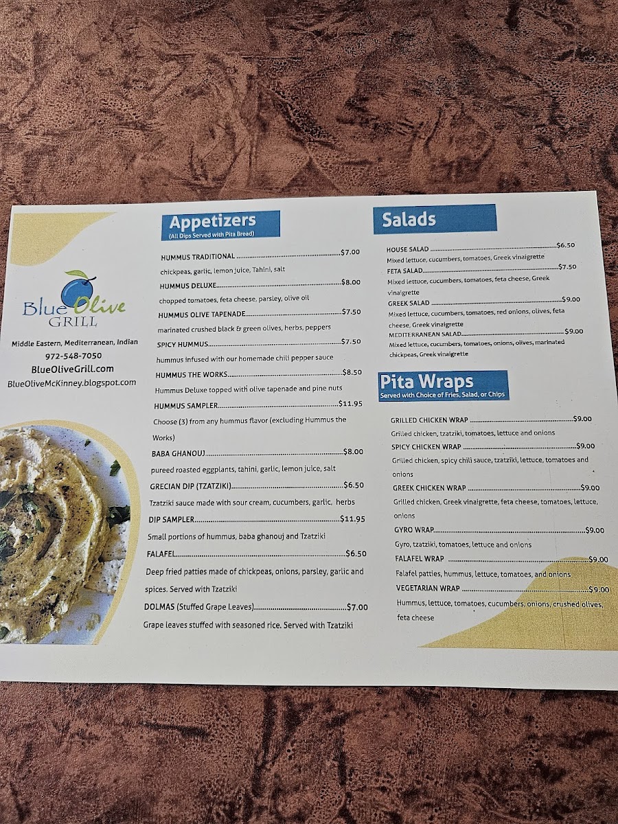 If you're looking to satisfy your cravings with flavorful Mediterranean-inspired dishes, look no further than the Blue Olive Grill Menu. Nestled at 2414 W University Dr in McKinney, TX, this charming spot offers a wide variety of delicious options. Whether you're in the mood for a savory gyro, a fresh Mediterranean salad, or grilled seafood, there's something to delight every palate. The menu blends classic Mediterranean flavors with a modern twist, featuring fresh ingredients and bold spices in each dish. From warm, fluffy pita bread to mouthwatering kebabs, you’ll feel like you've taken a trip to the Mediterranean coast with every bite. Whether you're dining in or taking your meal to go, the Blue Olive Grill Menu has something to make every meal feel special.
